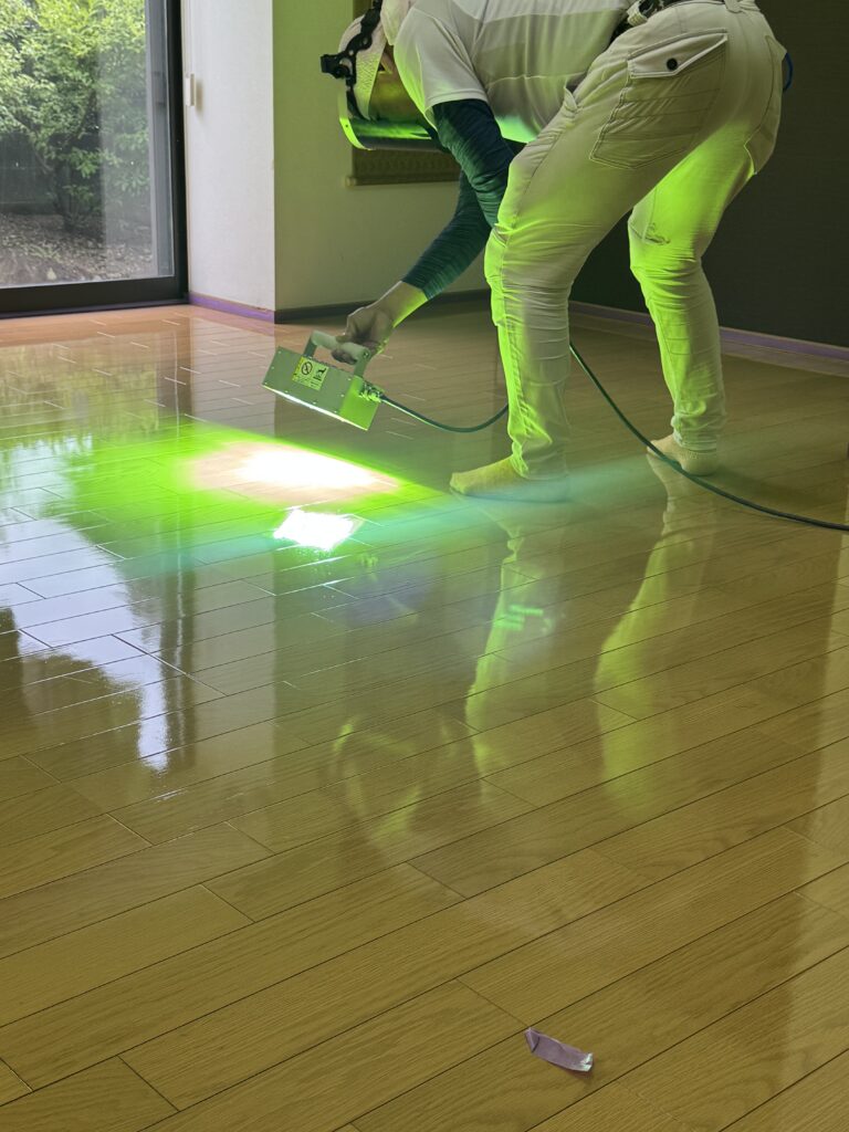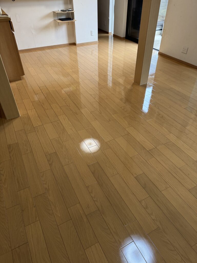 今回は大阪府阪南市で戸建て入居中のペット用UVフロアコーティングプラスです。ワックスを剥離してのコーティングです。