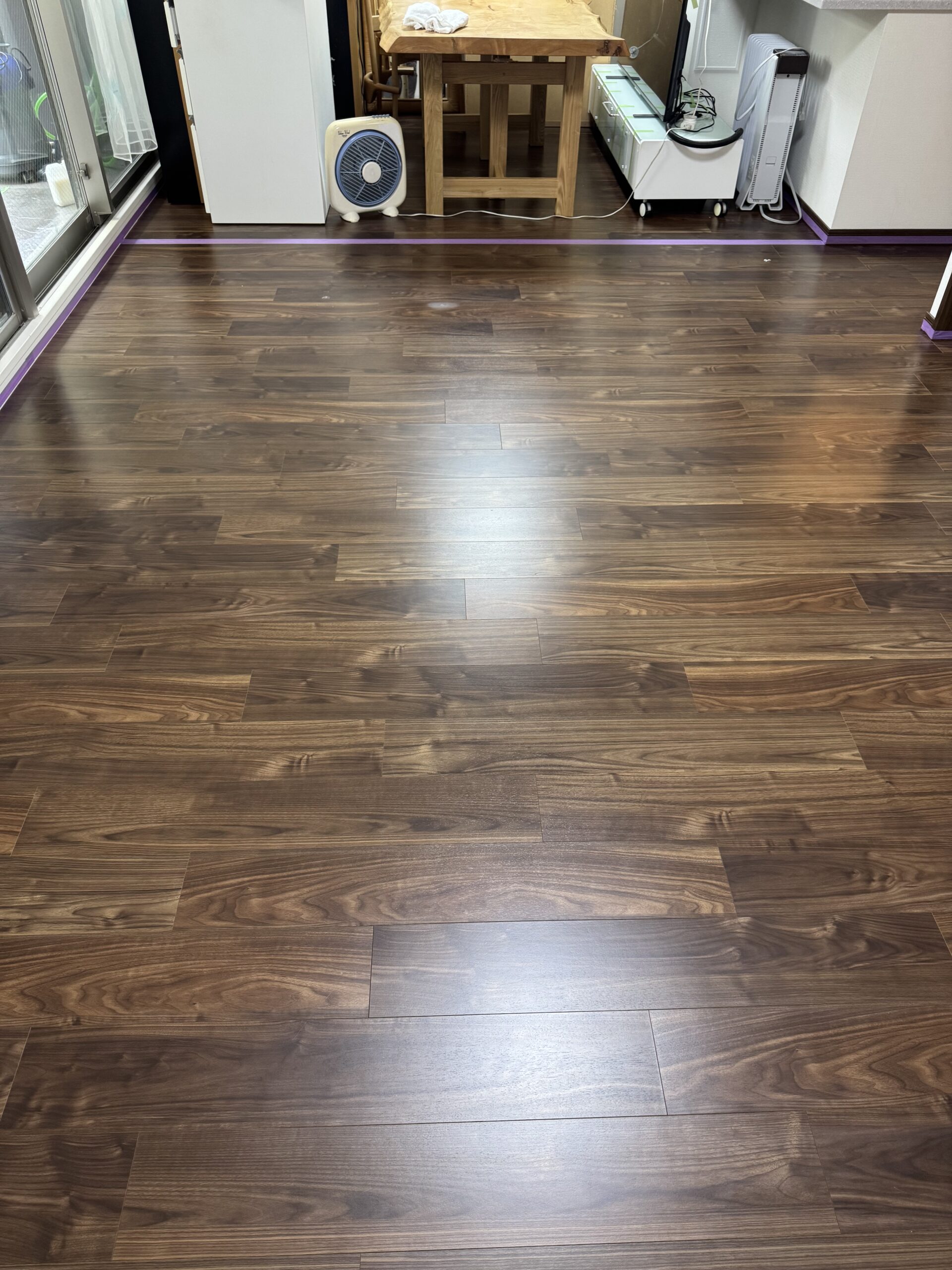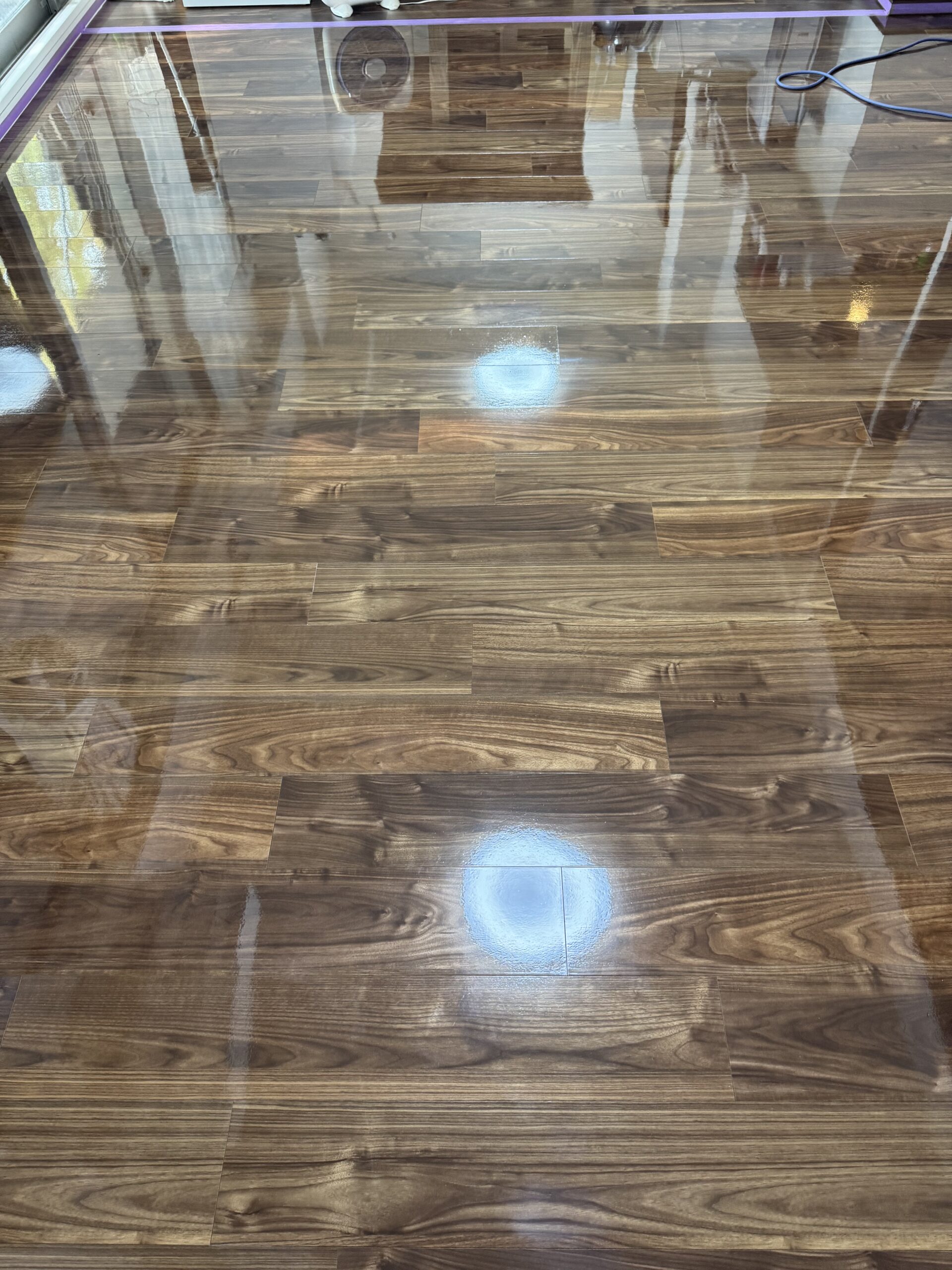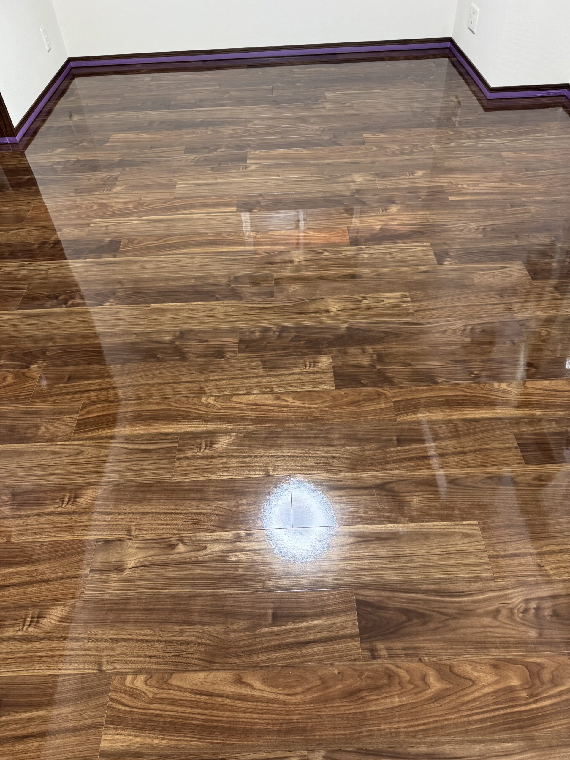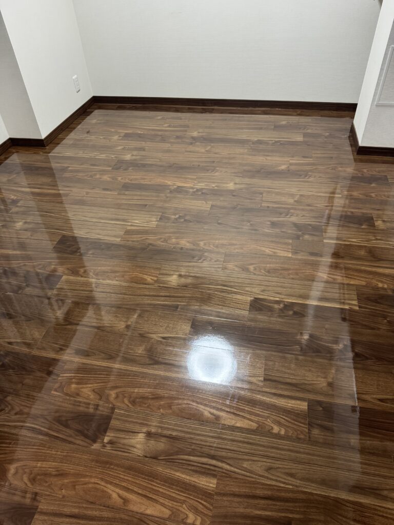 水を張った様なツヤツヤの美しい床になりました。2日間ありがとうございました。
